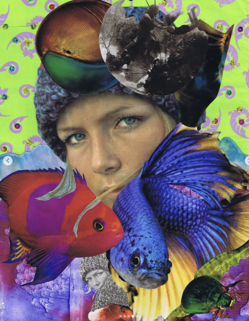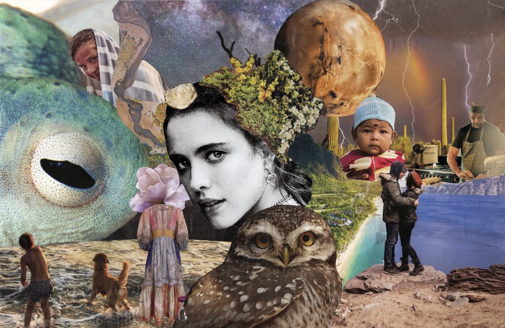 Soy artista visual, Licenciada en Arte UC y con Diplomado en Ilustración Editorial. Nací en Santiago y vivo en Frutillar desde 2009. Soy artista visual, muralista e ilustradora. En el collage encuentro un lenguaje para unir lo onírico con la naturaleza que habito, donde mujeres, objetos y animales dialogan en libertad
