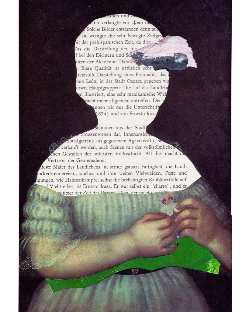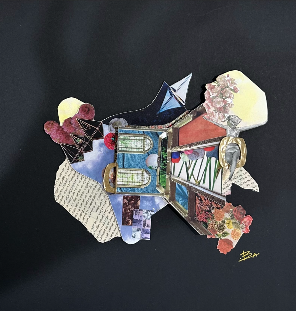 Mamá de tres niñas que explotan mi creatividad. Mi práctica visual es una mezcla de todos mis ámbitos, mi familia, mi oficio y mi espiritualidad. Son el puente entre viajes, observaciones y experiencias personales que me mueven, que me llevan a explorar a través de la palabra y la forma. El collage se despliega como una extensión de mi mirada arquitectónica: composición y reconstrucción del espacio, de la naturaleza, de lo humano. En mi obra plástica exploro las capas físicas y emocionales del cuerpo, la memoria y el territorio, conjugando materiales, texturas y fragmentos de imágenes en donde cada historia personal se vuelve murmullo colectivo.